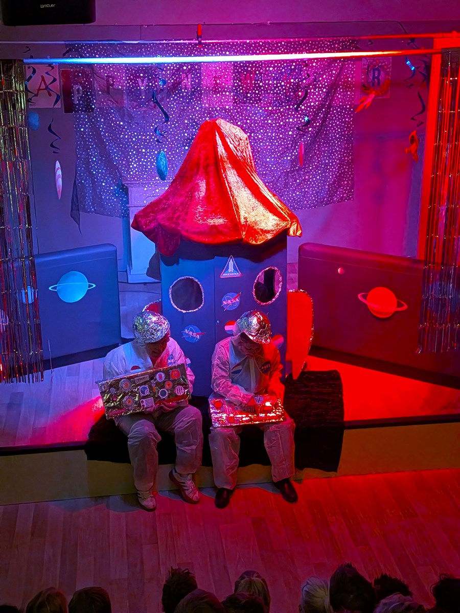 Afgelopen maandag zijn de kleuters aan een spectaculair nieuw avontuur begonnen: het thema Ruimte! De opening was een groot succes. De leerkrachten verrasten de kinderen met een kort toneelstukje, waarmee het startschot werd gegeven voor een leerzame reis langs de sterren en planeten.