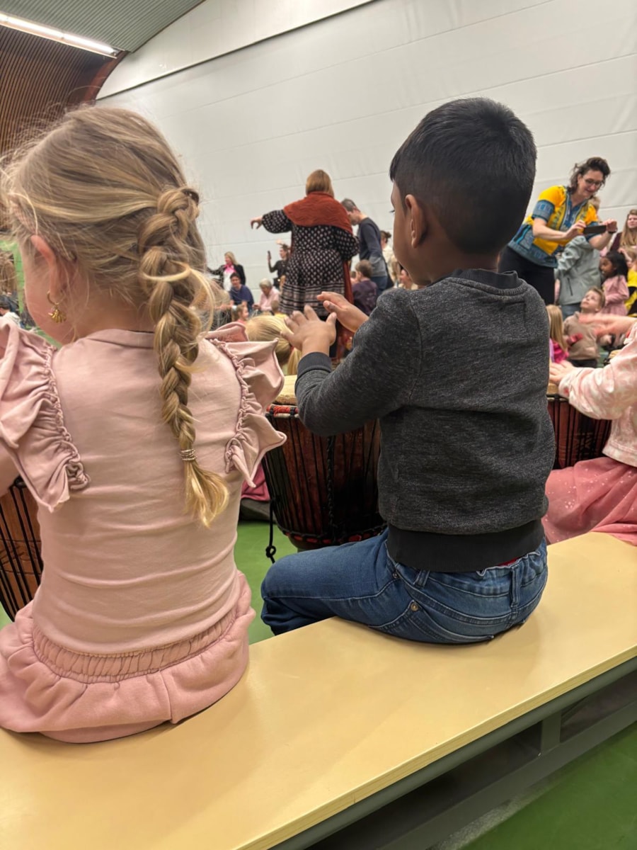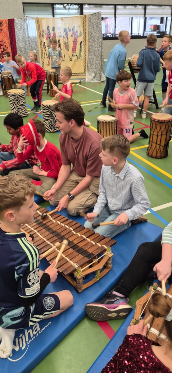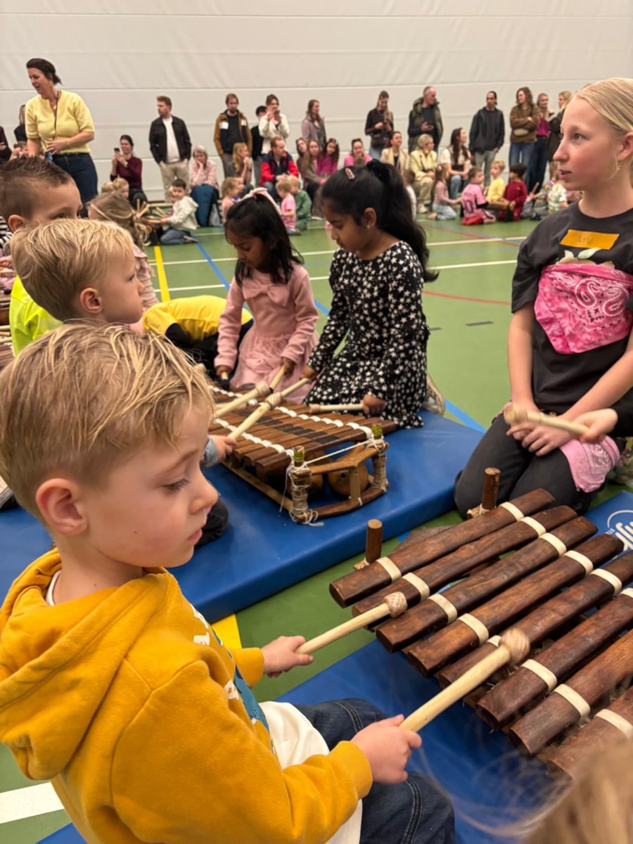 Vandaag was de afsluiting van ons schoolbrede thema: ”Op wereldreis”. De leerlingen van alle groepen hebben verschillende muziekinstrumenten uit kunnen proberen. Wat een feestje!